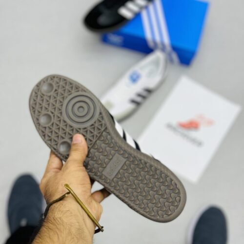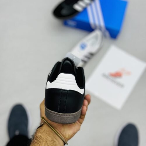 These black WB samba shoes provide both style and comfort. Crafted with high-quality leather, these shoes offer a sleek and professional look. The spongy insole and flexible outsole provide long-lasting comfort, making them ideal for both work and play. Upgrade your shoe collection with these expertly crafted WB samba shoes.