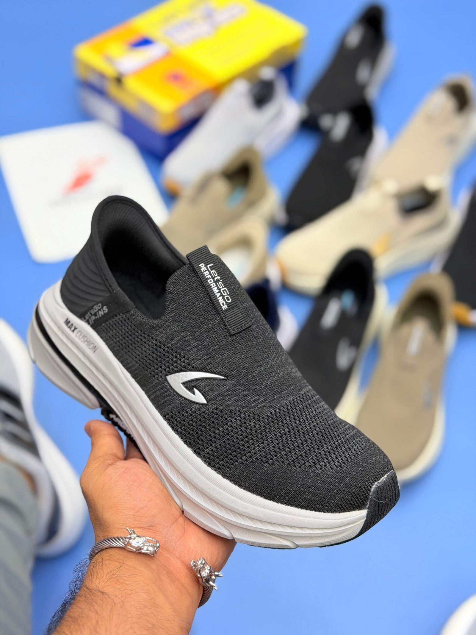 Premium lightweight slip-on sneakers — ultra-comfortable, breathable knit upper, soft cushioning sole aur all-day walking support ke sath. Daily wear, travel aur casual style ke liye perfect. Stylish design, flexible fit aur durable outsole jo har surface par smooth grip deta hai. Ab effortless comfort ke sath premium look hasil karein — Slip-ins LetsGo series men k liye ideal choice!”
